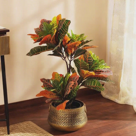 Artificial Croton Plant in Black Pot for Home Décor – Realistic Indoor Plant (4 Feet)
