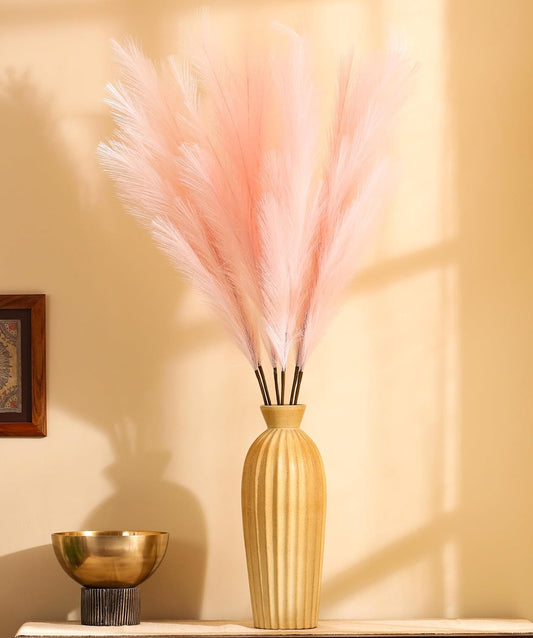 Artificial Pampas Sticks (3 Sticks, 3 Feet, Pink) for Home Décor – Realistic Flowers for Vase