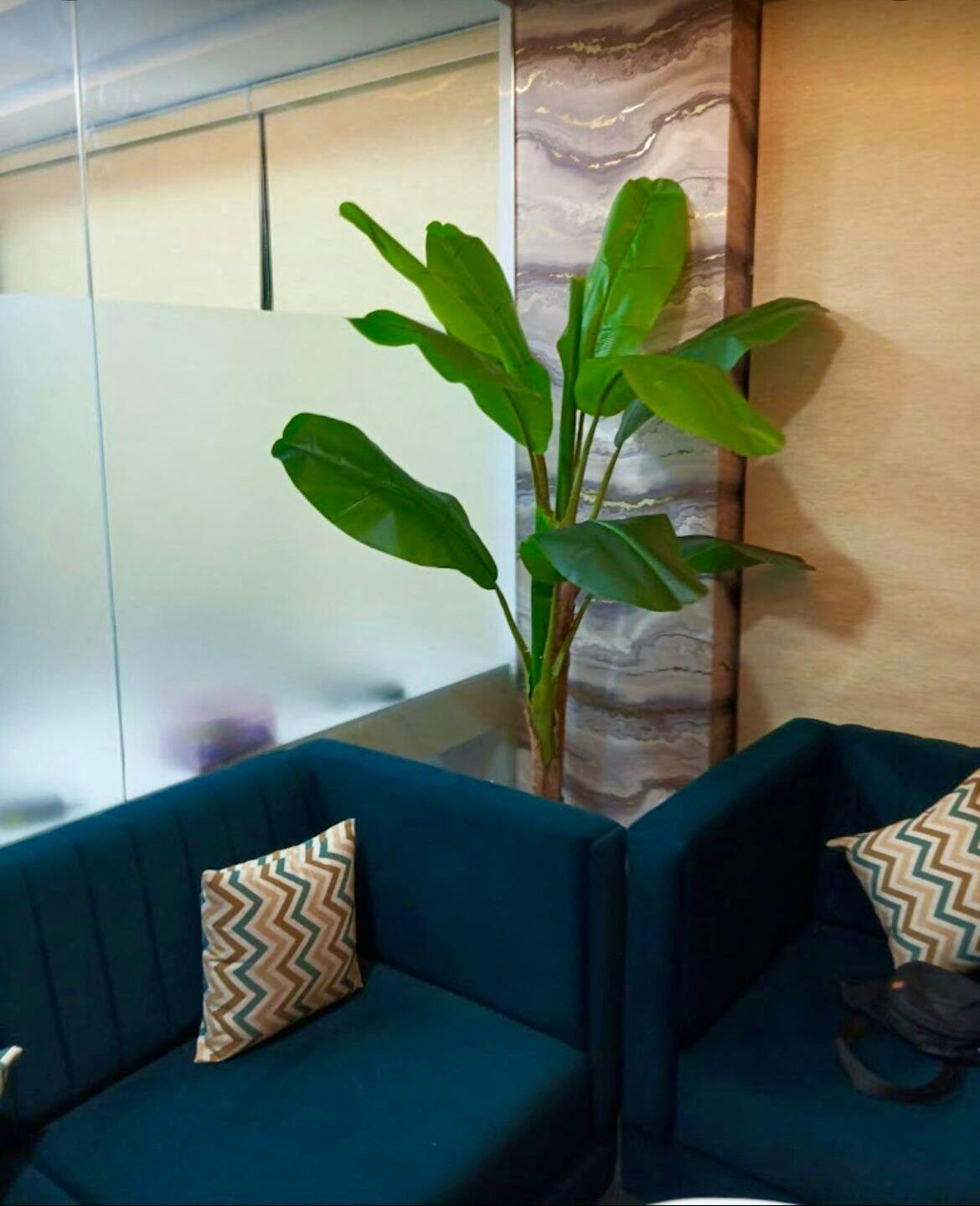 5 Feet Premium Artificial Banana Plant With Pot commands attention with oversized fake leaves on thick stems and sticks, ideal for home decor skipping all live plant routines.