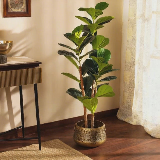 A 4 Feet artificial fiddle leaf fig plant in a black pot. Its broad, glossy leaves make it a stylish and modern décor choice.