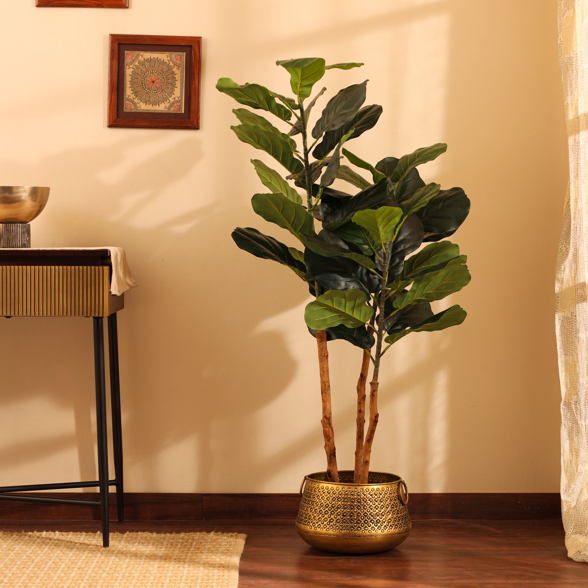 Artificial Fiddle Leaf Fig Plant for Home Décor – Realistic Indoor Plant (With Pot, 130 cm)